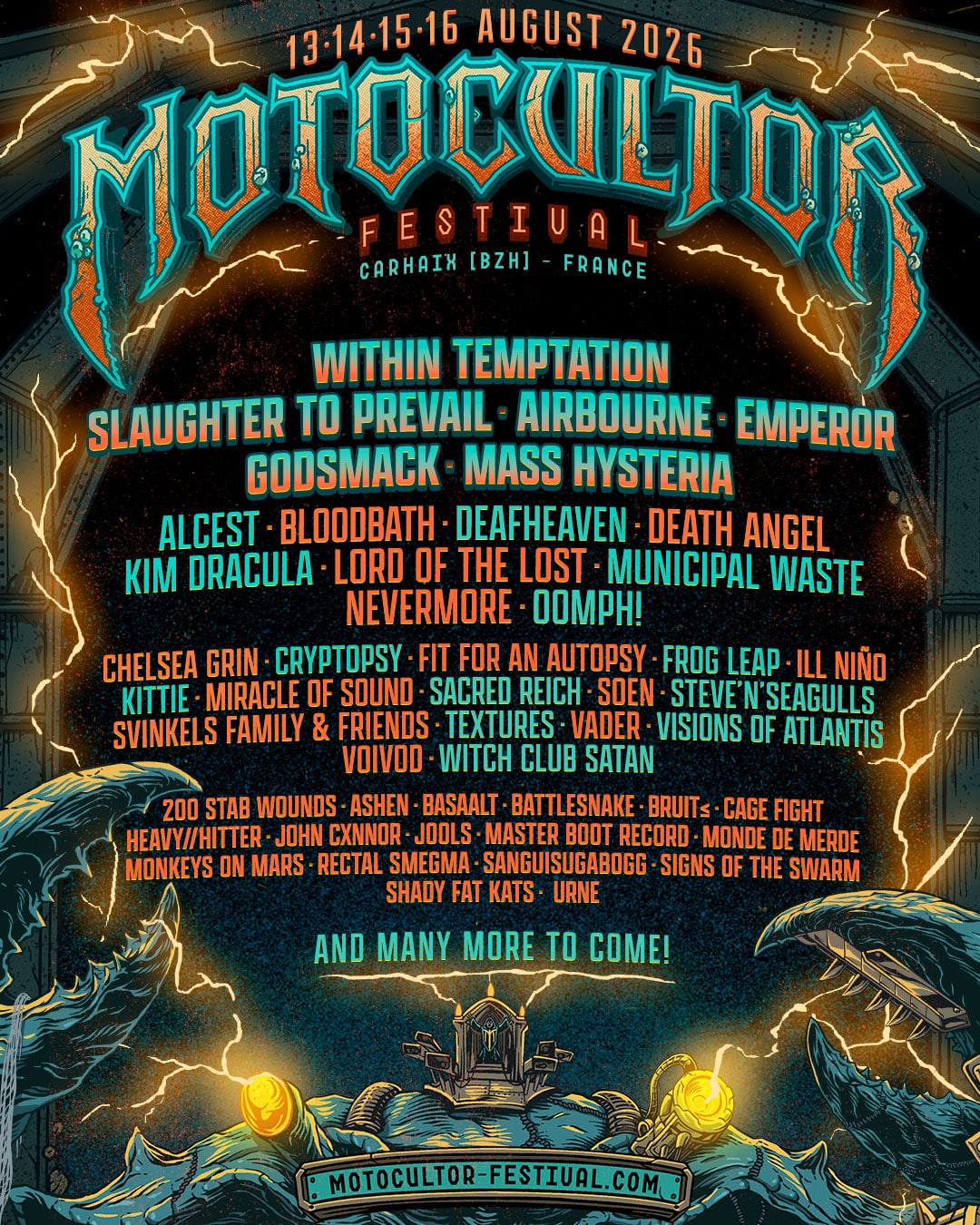 ALCEST – CAGE FIGHT – CHELSEA GRIN – EMPEROR – LORD OF THE LOST – MASS HYSTERIA – MASTER BOOT RECORD – MIRACLE OF SOUND – SLAUGHTER TO PREVAIL – SOEN – TEXTURES – URNE – VISIONS OF ATLANTIS + 17 groupes à annoncer