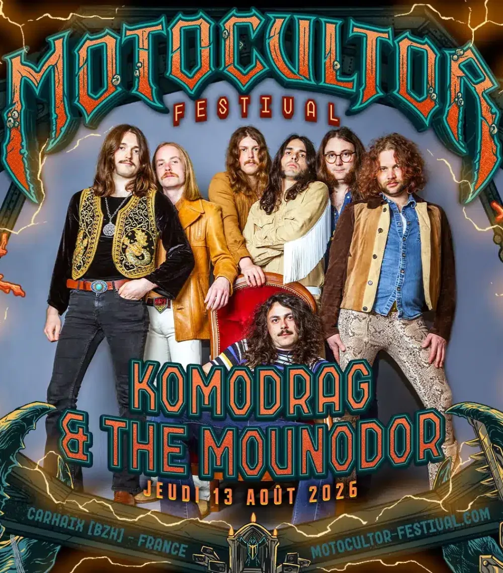 Vous connaissez Moundrag ce duo de Paimpol qui ressuscite le prog heavy psyché 70’s à coups d’orgue vengeur ? Vous connaissez Komodor cette formation que l’on dirait tombée du tourbus de Deep Purple ou Led Zeppelin ? Et bien, voici la fusion des deux pour toujours plus de psychédélisme et de folie vintage ! Deux batteries, trois guitaristes, des percussions à gogo et une ribambelle de hits façon Easy Rider sous champis, ce supergroupe 100% breton n’en finit pas de parcourir l’Europe avec son rock échappé d’une époque qu’ils nous feraient presque regretter…